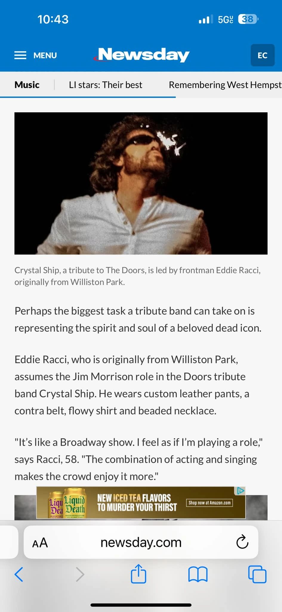Crystal Ship has been hailed as “the ultimate Doors tribute in the world” (WRCN New York), with frontman Eddie Racci delivering a performance so eerily accurate, it’s been called “spine-tingling” and “like seeing Jim Morrison come back to life.”